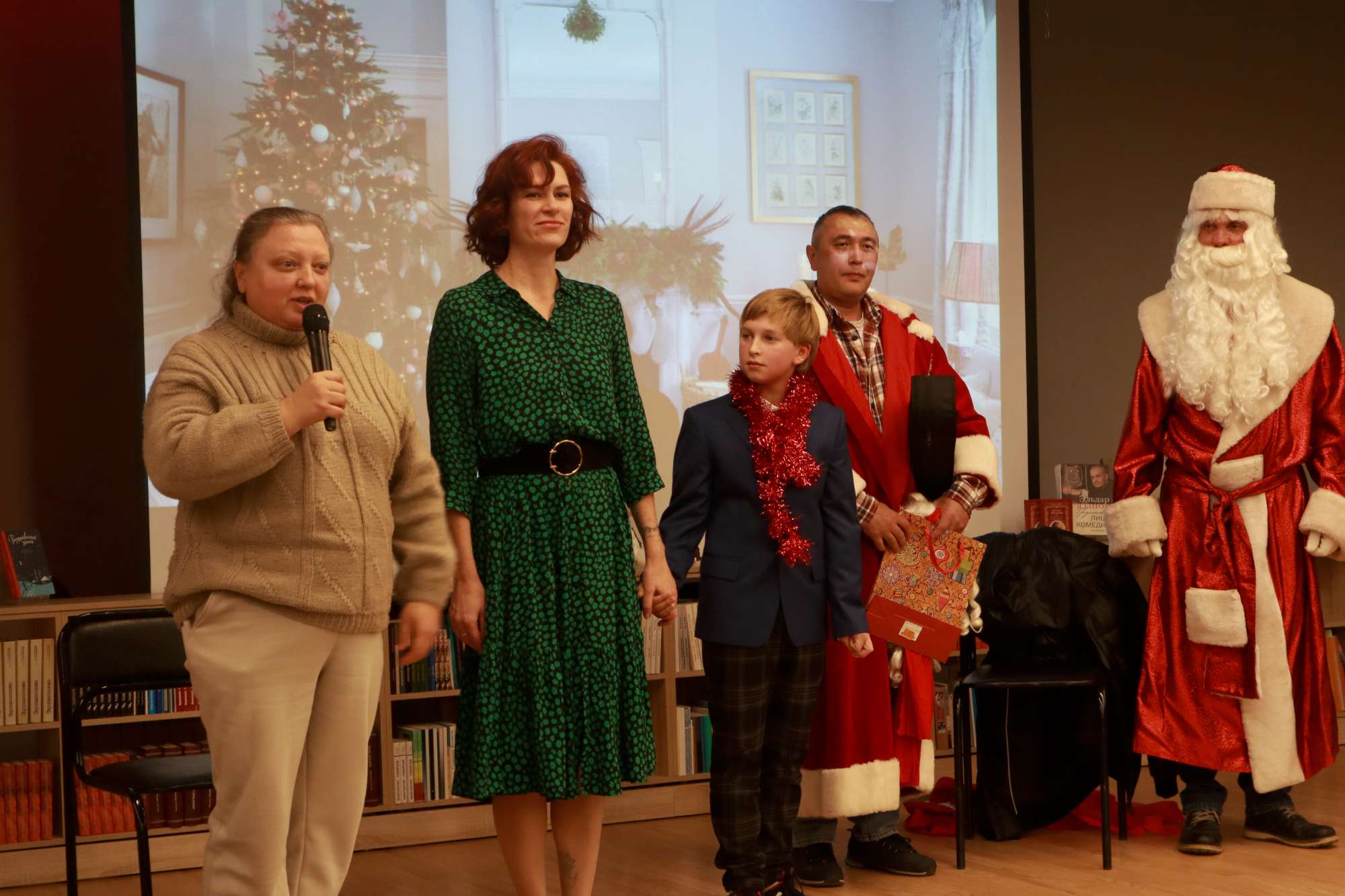 После Деда Мороза дань уважения отдали одному из лучших советских и российских режиссёров Эльдару Рязанову. Посмотрели небольшой отрывок из фильма «Ирония судьбы, или С лёгким паром», прочитали стихотворения Эльдара Александровича, которые подготовили участница детского театрального коллектива «Колибири» Валерия Павлова и участница Школы актёрского и речевого мастерства под руководством Натальи Козловой Ольга Сёмочкина. Ведущая Марина Аксёнова исполнила песню на стихи Эльдара Рязанова «У природы нет плохой погоды».