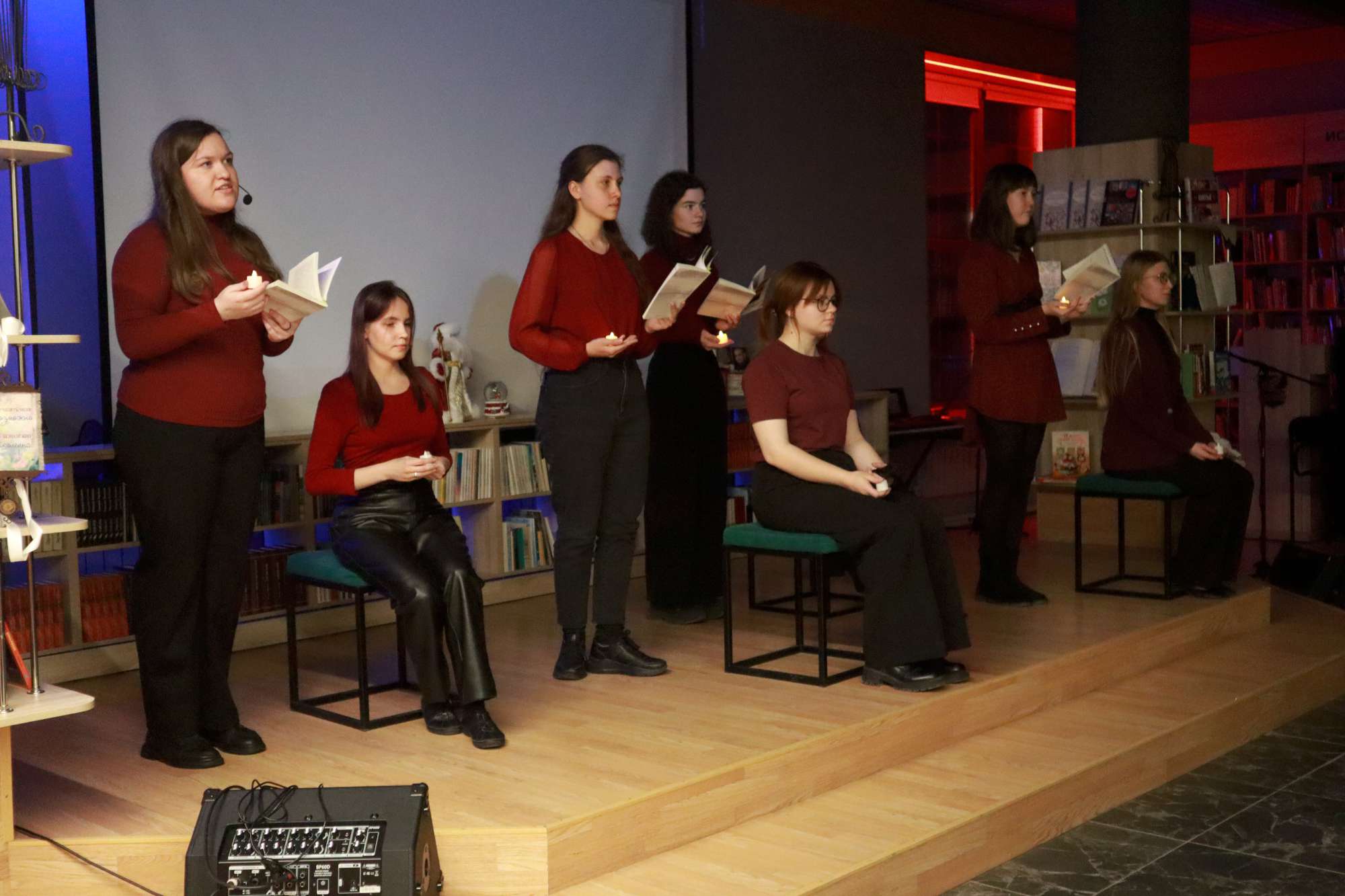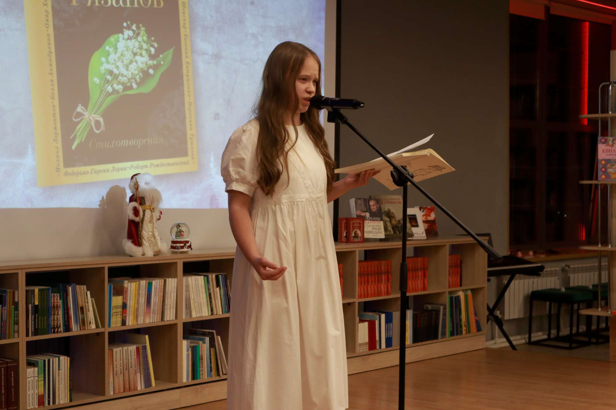 Открыли вечер заведующий отделом обслуживания библиотеки №5 «Окна» Наталья Мастепако, исполнившая музыкальную композицию на скрипке и участница театра-студии ДК «Металлург» (руководитель Марианна Новицкая) Дарья Сивухина, которая прочла мини-поэму златоустовской поэтессы Людмилы Дугарь-Толкач «18 ноября».