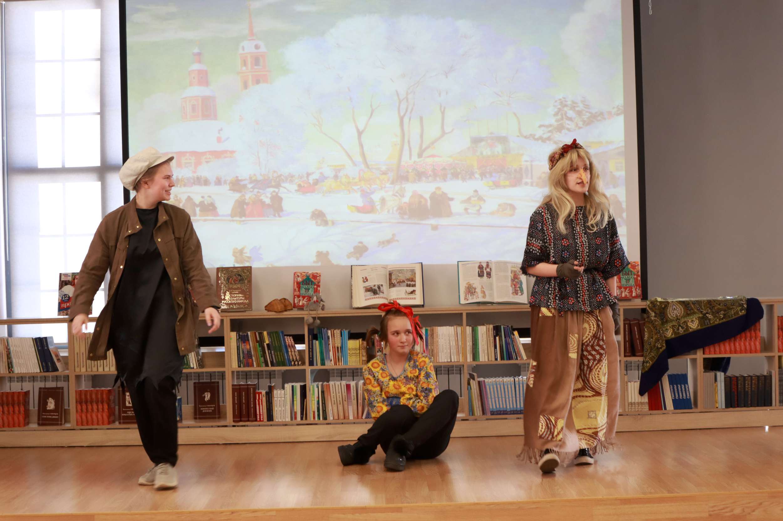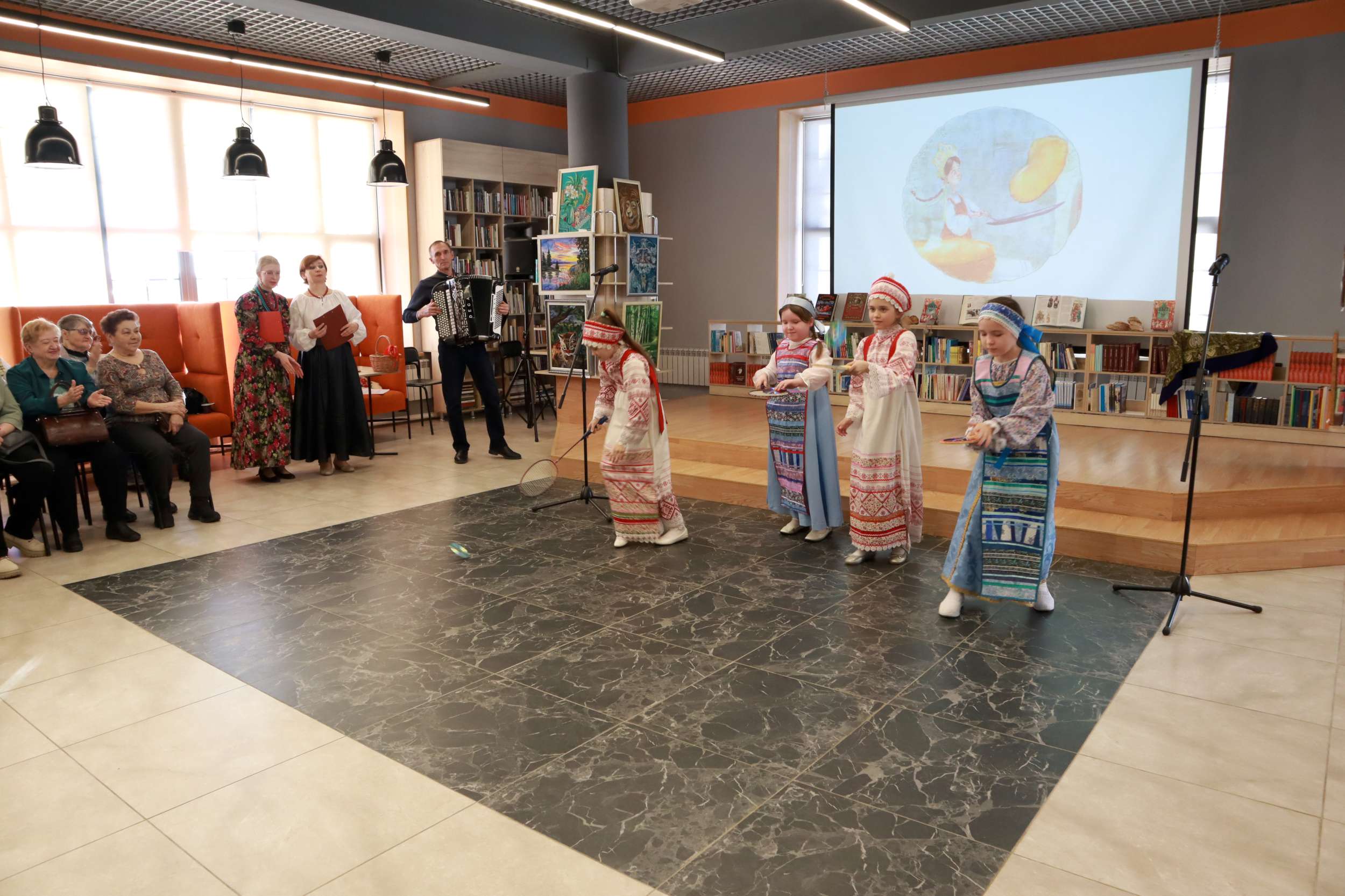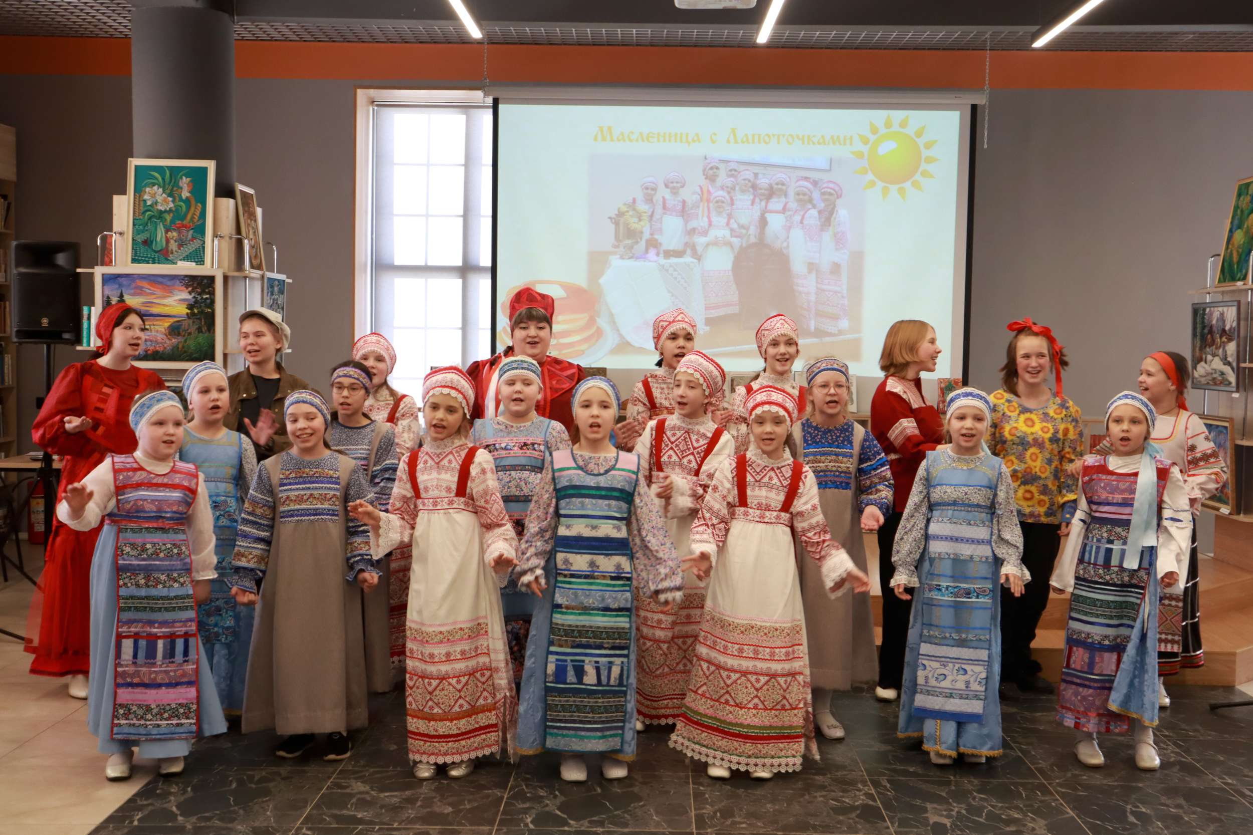 13 марта в библиотеке – городской гостиной «Окна» совместно с образцовым фольклорным коллективом «Лапоточки» прошёл праздник «Масленица».