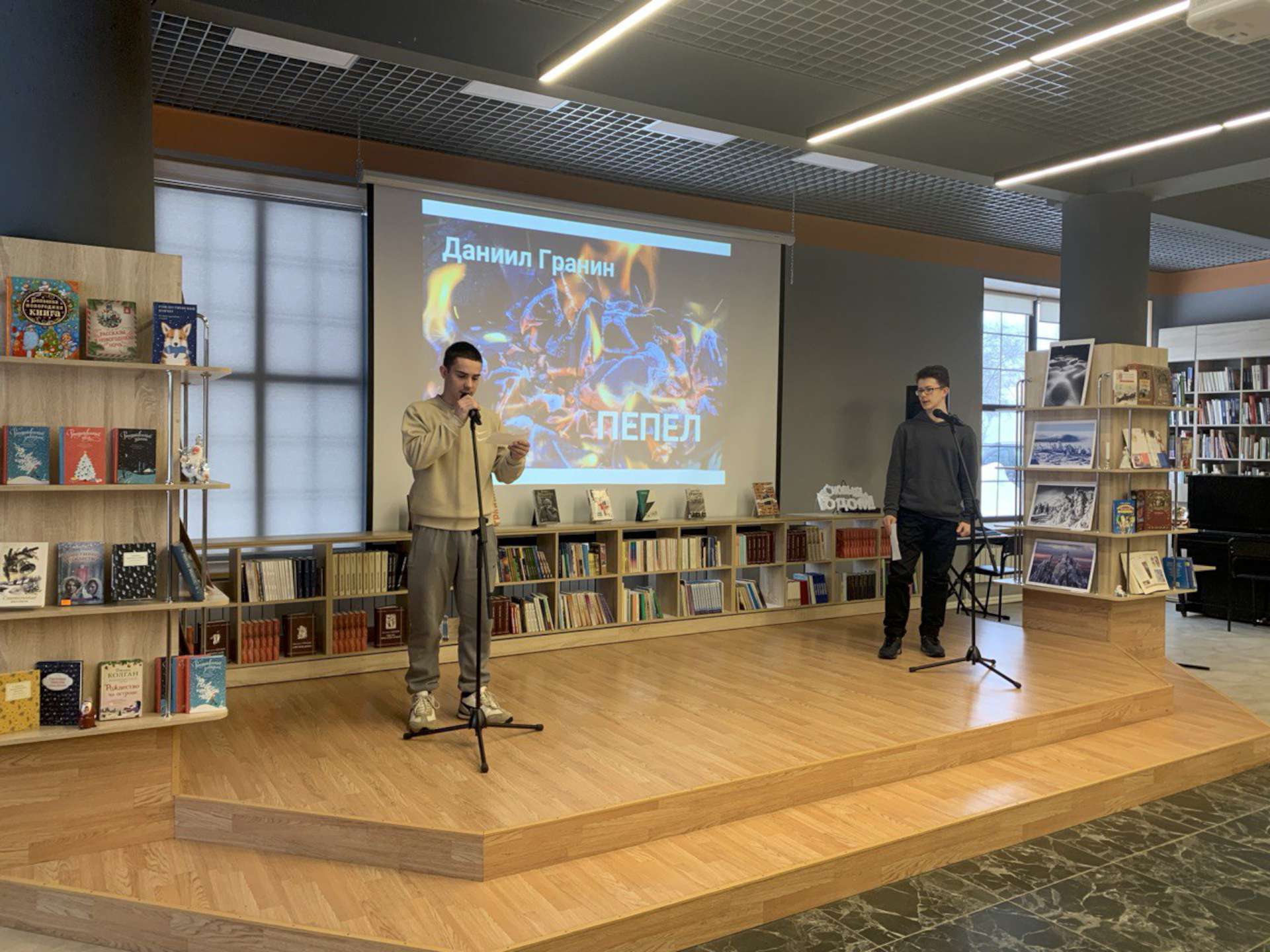 14 января 2024 года в библиотеке «Окна» прошёл вечер-квартирник «В новый год с музыкой, и литературой, и театром». Сотрудники библиотеки совместно с юношеской литературно-театральной группой «МиЛиТ» поздравили читателей со Старым Новым Годом, а также игроков серии брейн-рингов «Нехрестоматийный Пушкин» с победой и участием.