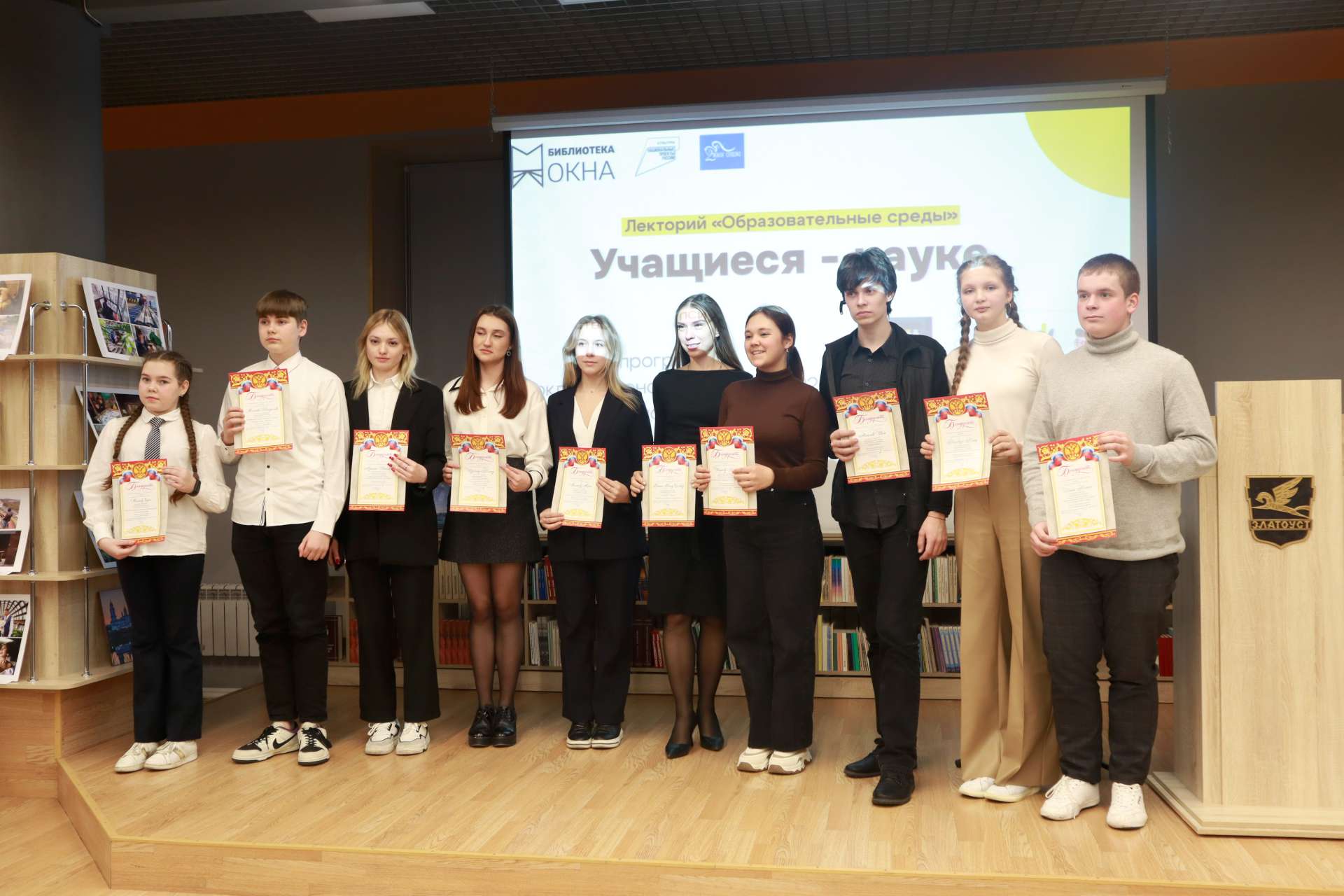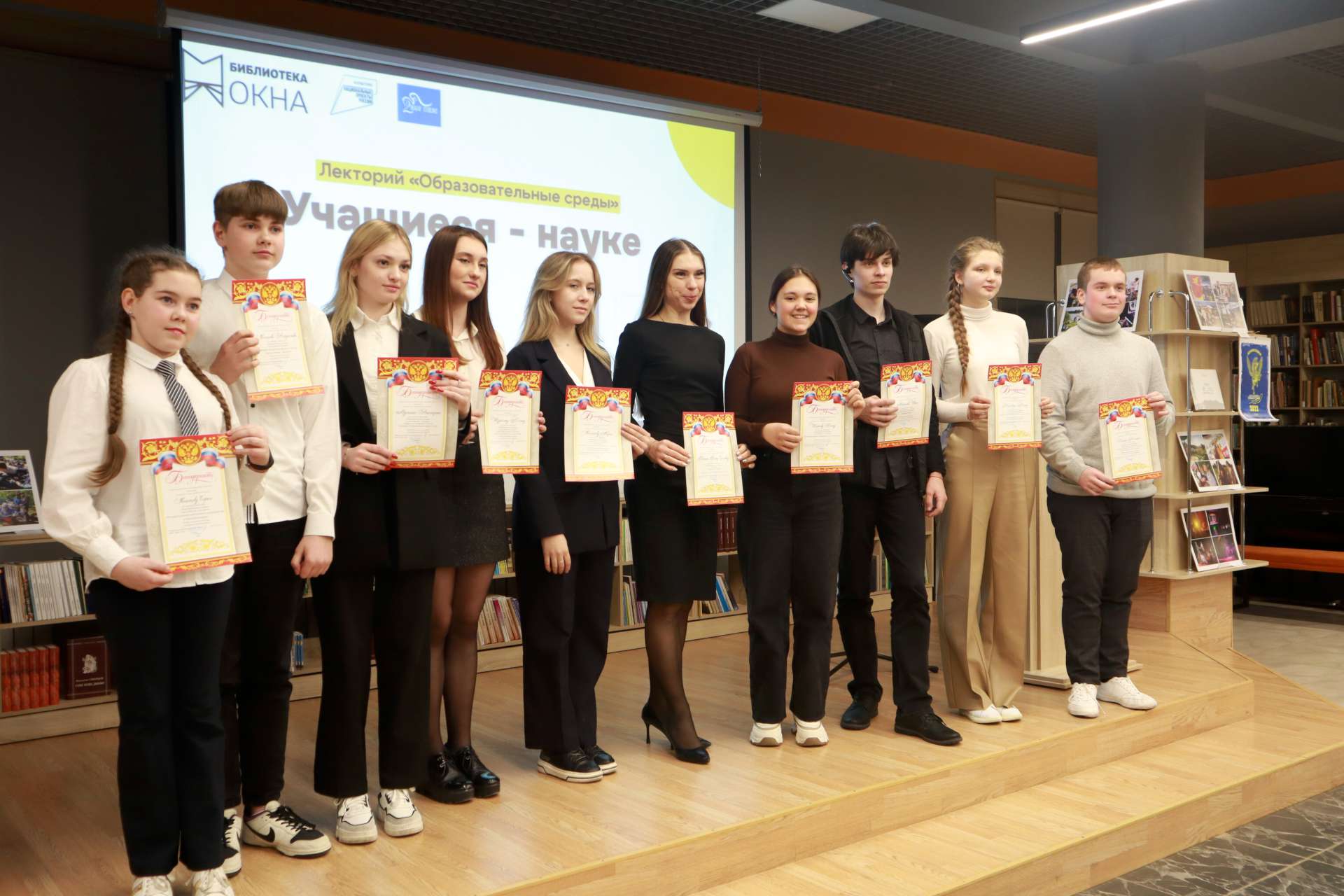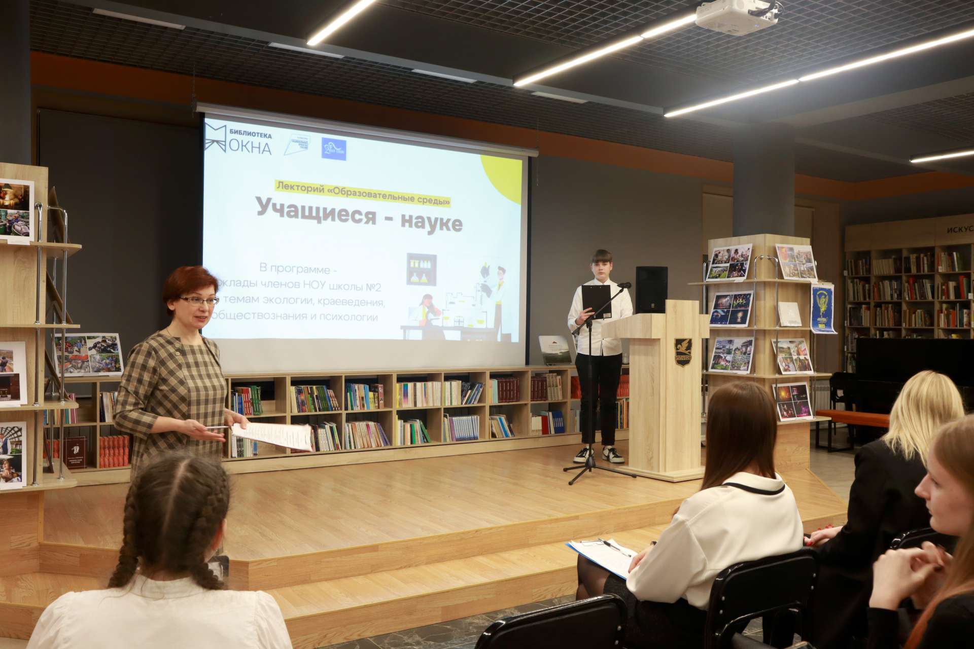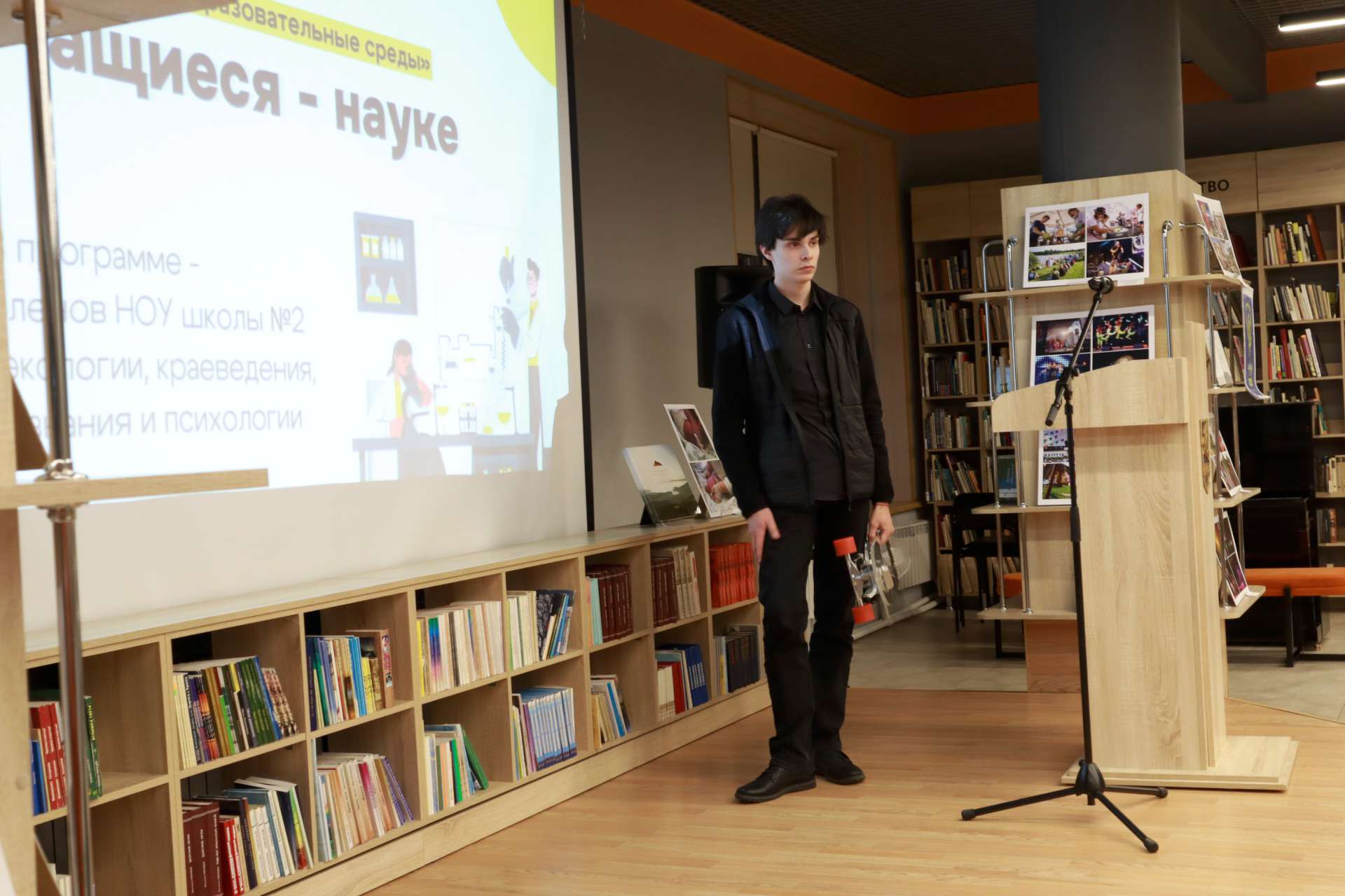 24 января занятие лектория «Образовательные среды» в модельной библиотеке «Окна» было приурочено ко Дню детских изобретений. Участники НОУ школы №2 представили в зале «Витражи» свои проекты.