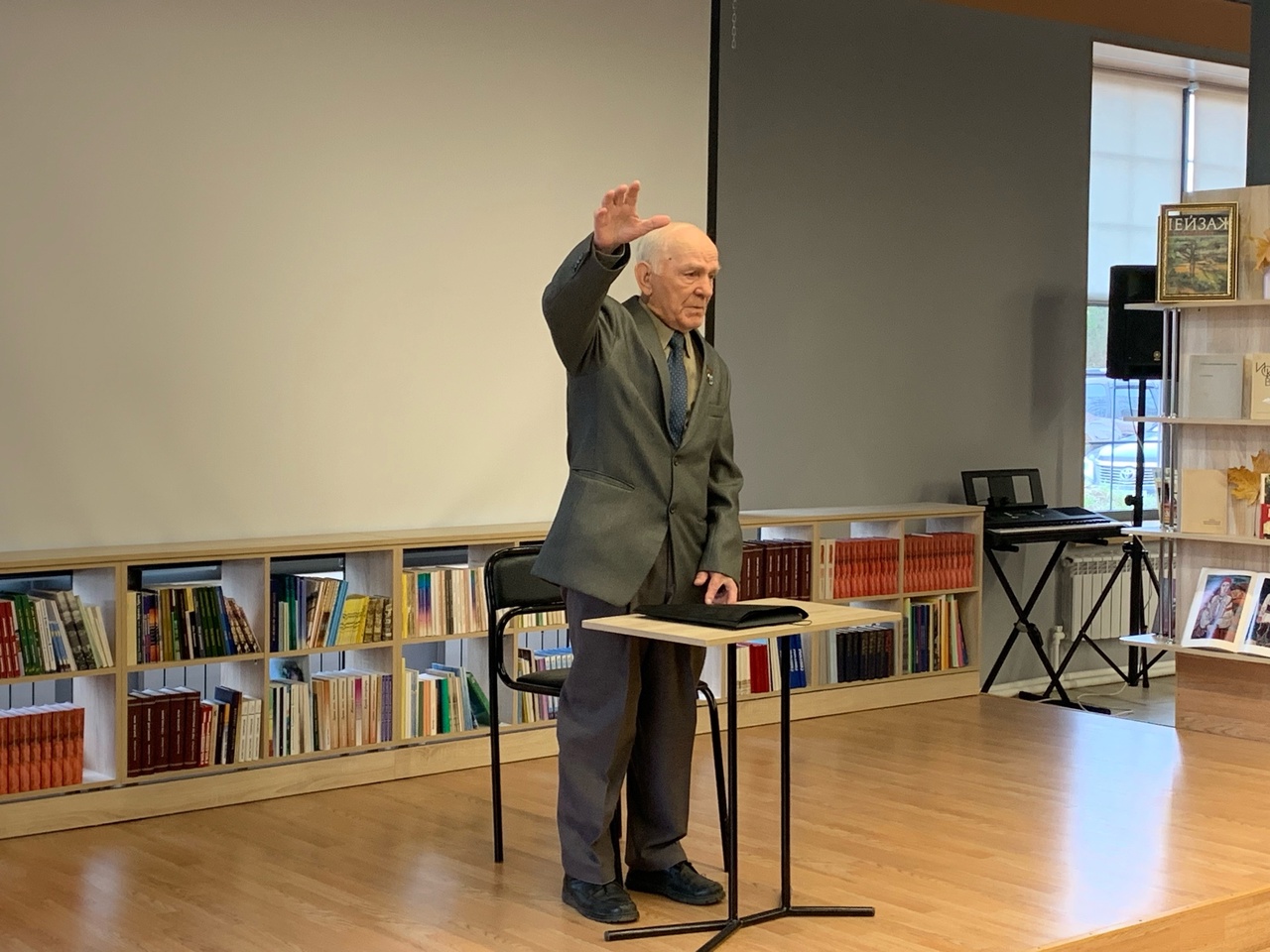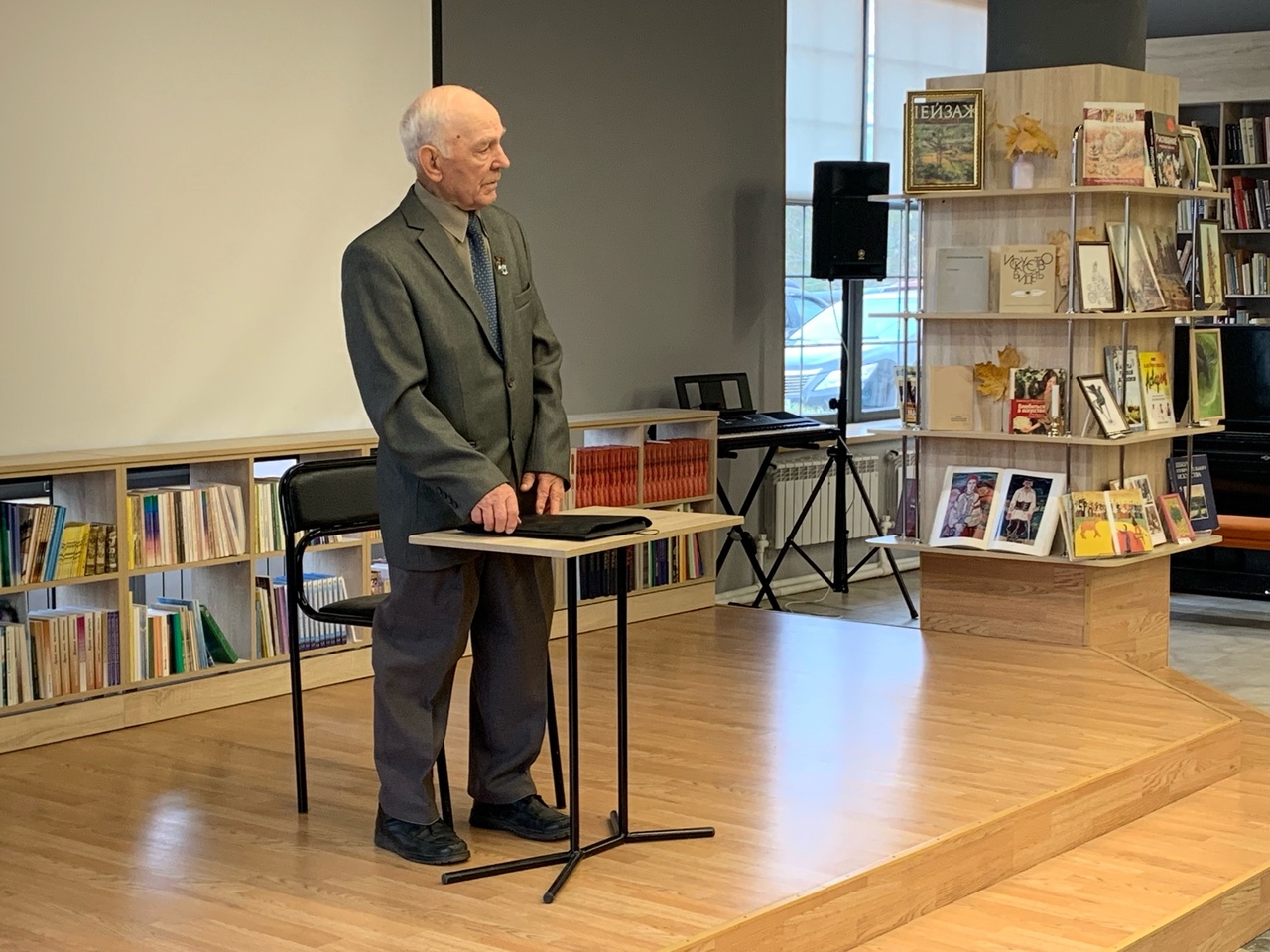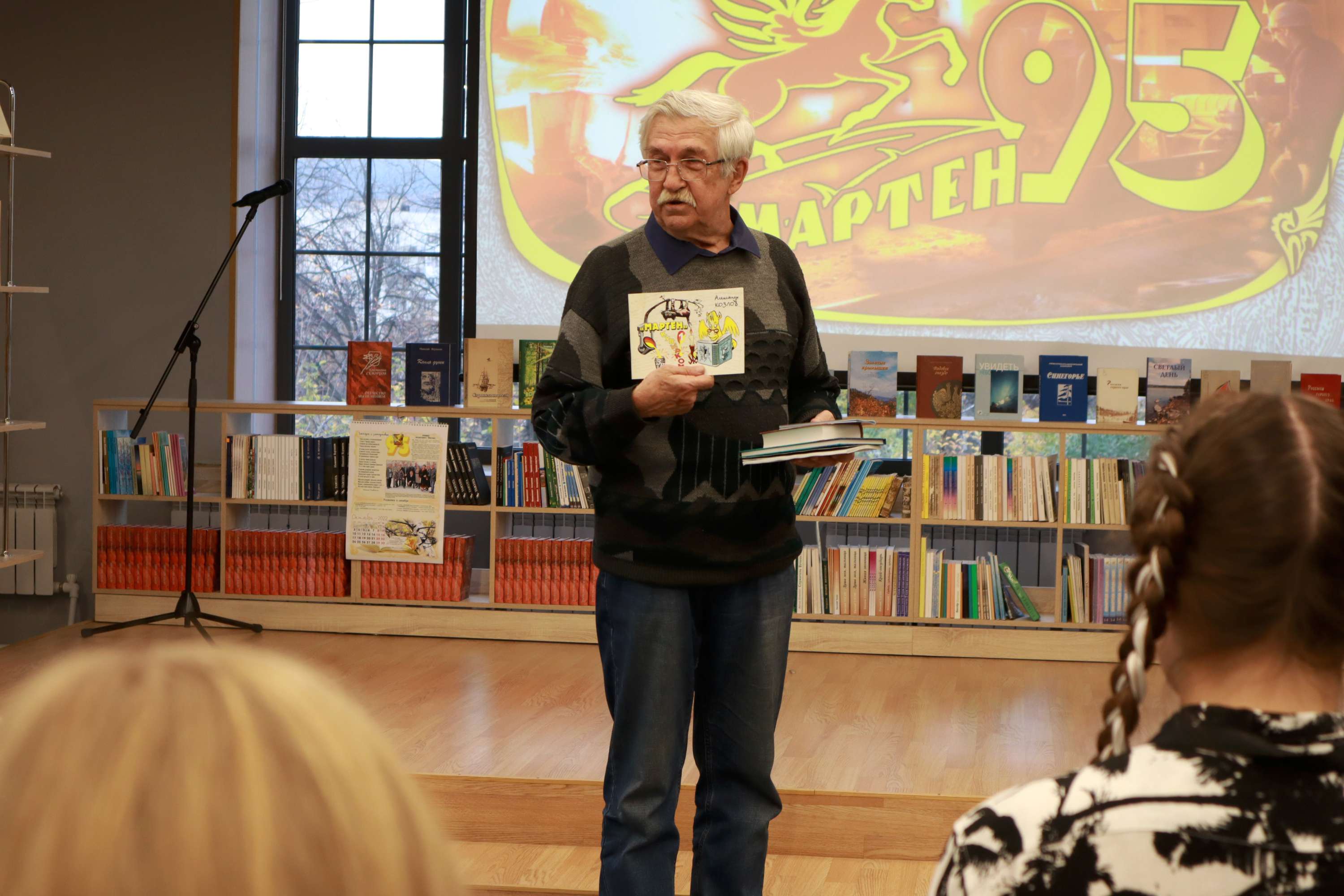 Председатель общества реабилитируемых Златоуста, член городского Совета ветеранов, ветеран спорта Юрий Васильевич Свинкин встретился в библиотеке "Окна" с воспитанниками казачьего кадетского корпуса "ЗлатИКа".
