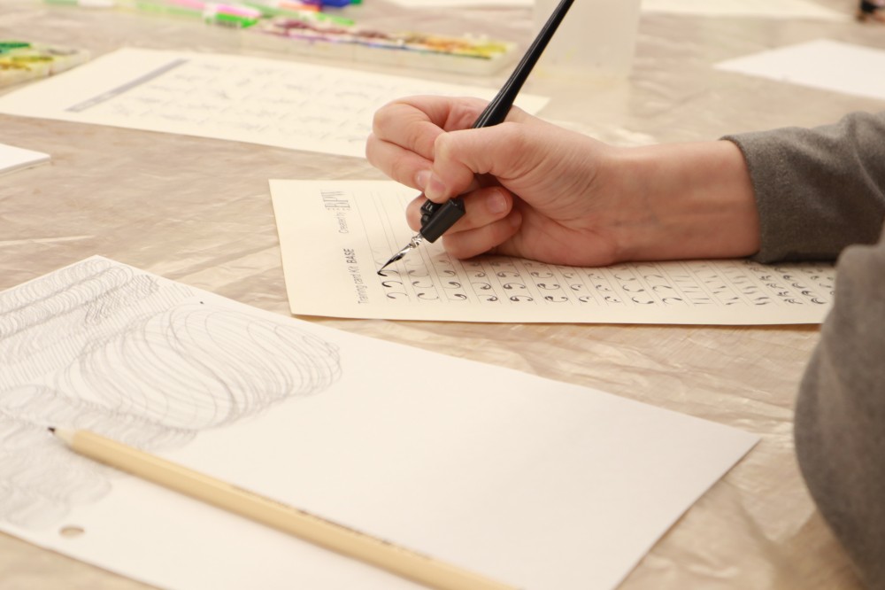 На уроке участники выводили вензеля  разными ручками, в том числе и настоящими перьями, отрабатывали почерк в прописях, писали двумя руками одновременно и изготавливали мотивирующие закладки «Всё получится».